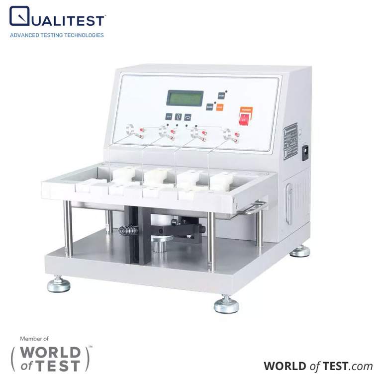 In this testing process, material samples shaped like troughs are submerged in water and flexed on the QualiBW™ 53338 to evaluate their ability to withstand water penetration.